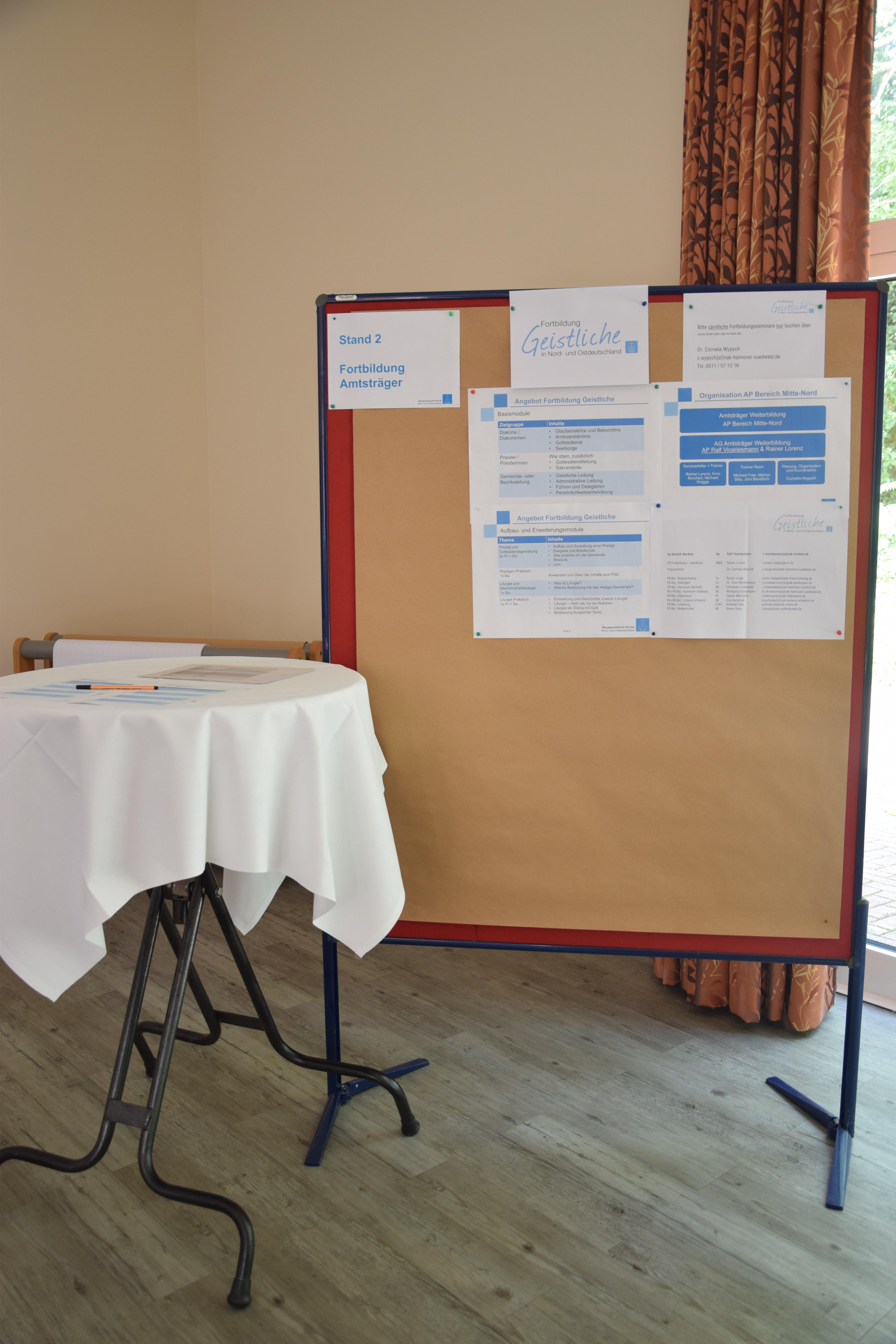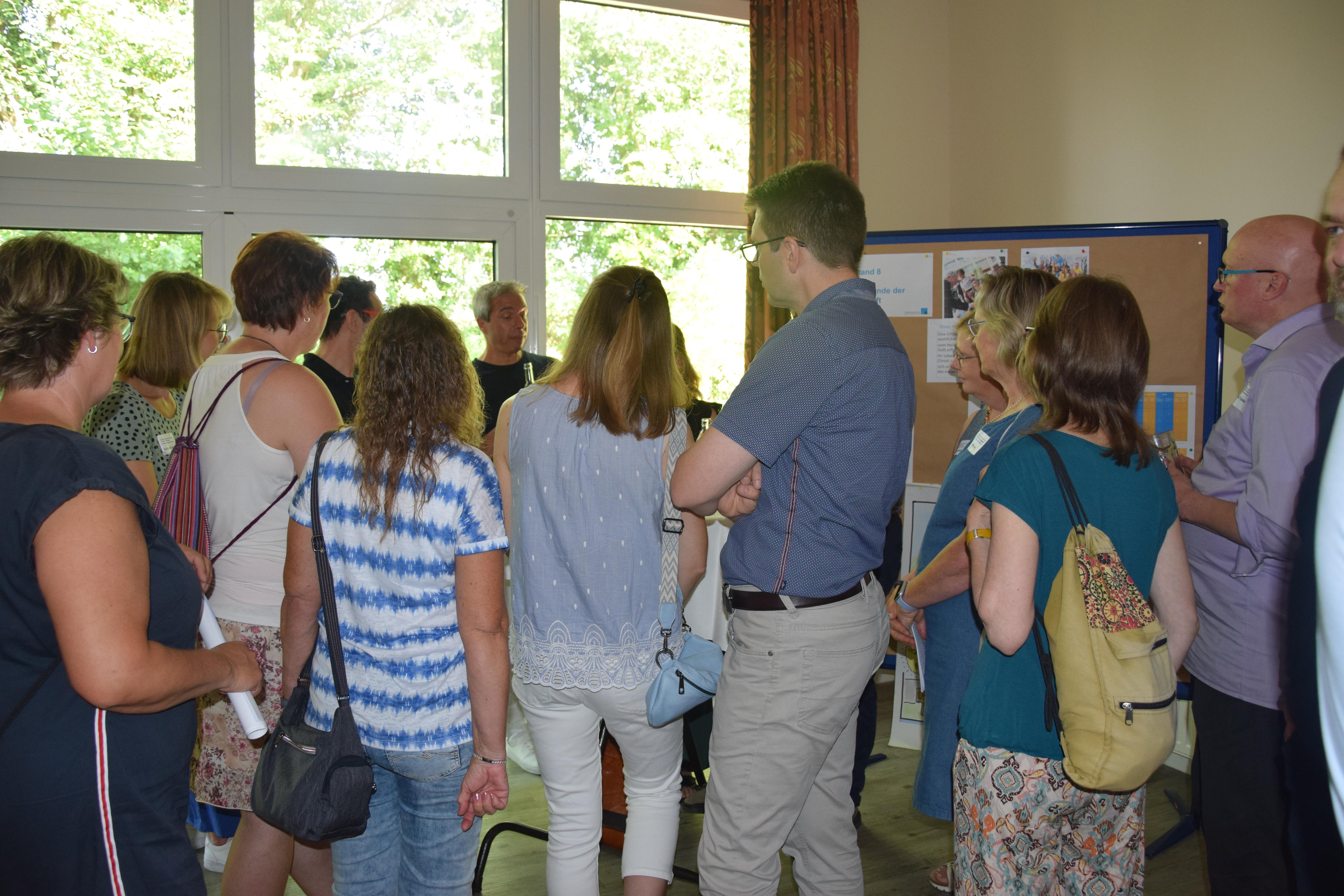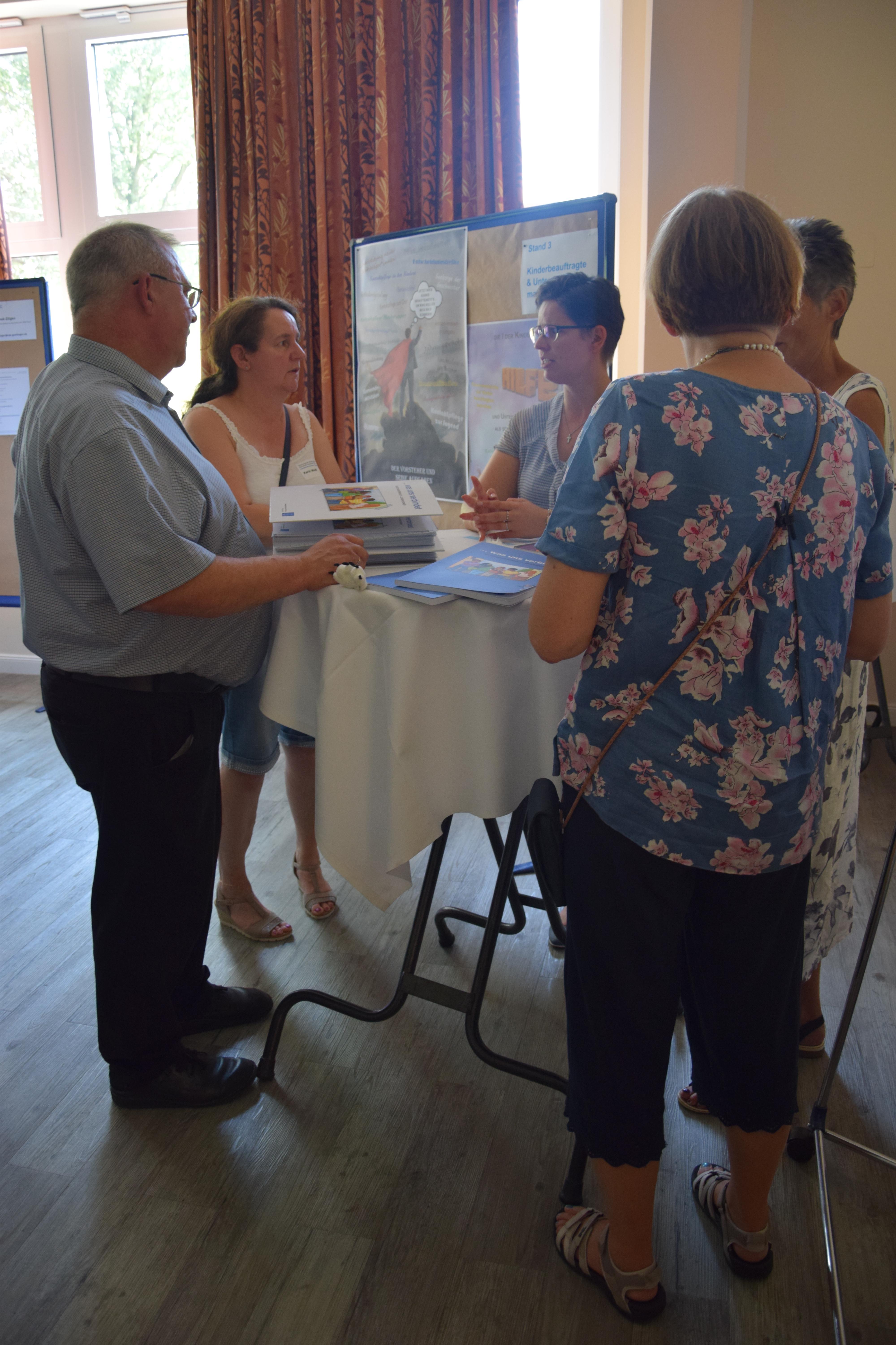 Im weiteren Verlauf des Nachmittags konnten die Teilnehmenden nach ihren Interessen thematisch wählen und miteinander am jeweiligen „Marktstand“ ins Gespräch kommen. Aus einigen Fachbereichen des Apostelbereichs stellten die jeweiligen Fachberaterinnen und Fachberater ein Thema ihres Aufgabengebiets vor. Darüber hinaus bestand das Angebot aus vier weiteren Ständen für Seelsorgerinnen und Seelsorger in Leitungsfunktionen: