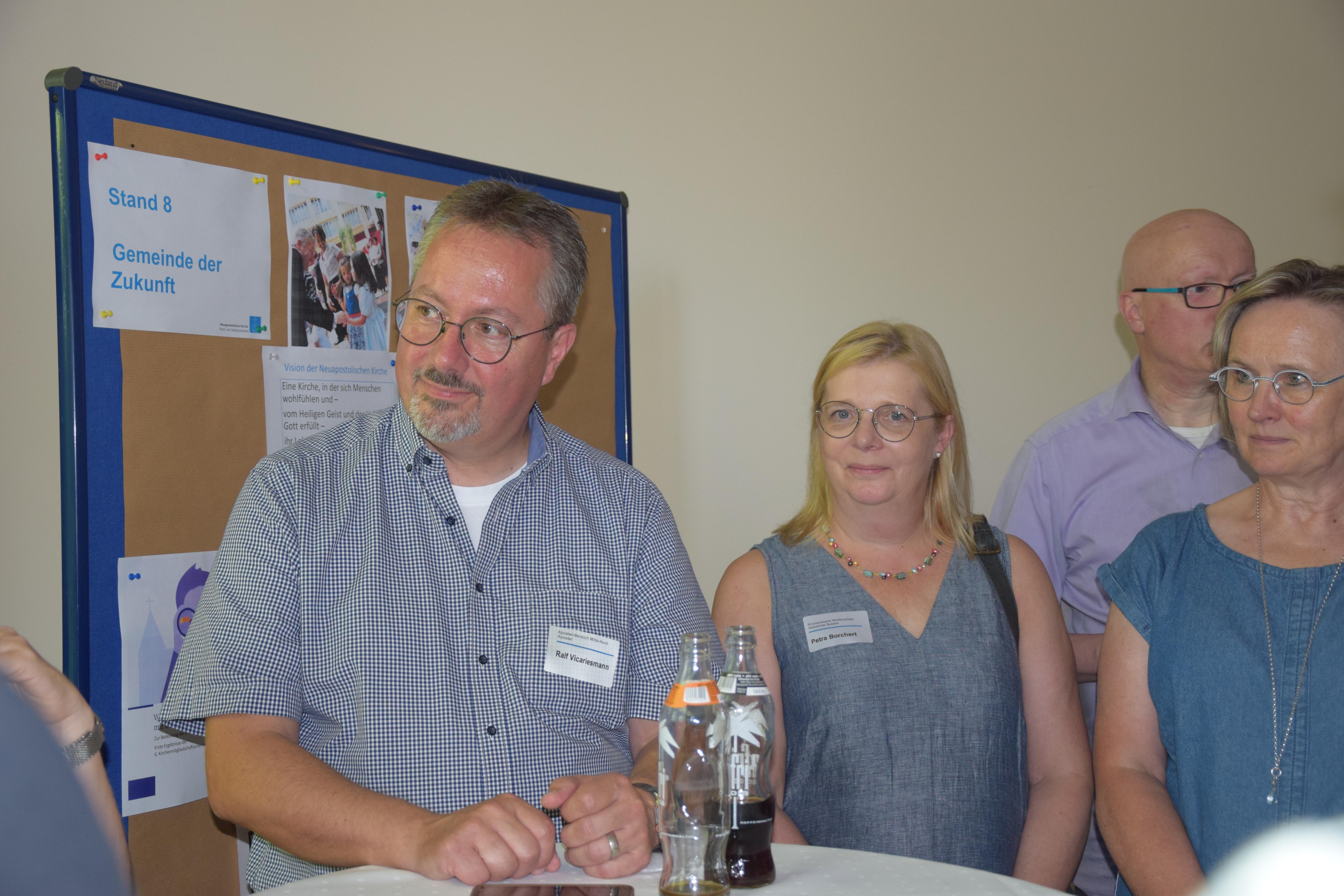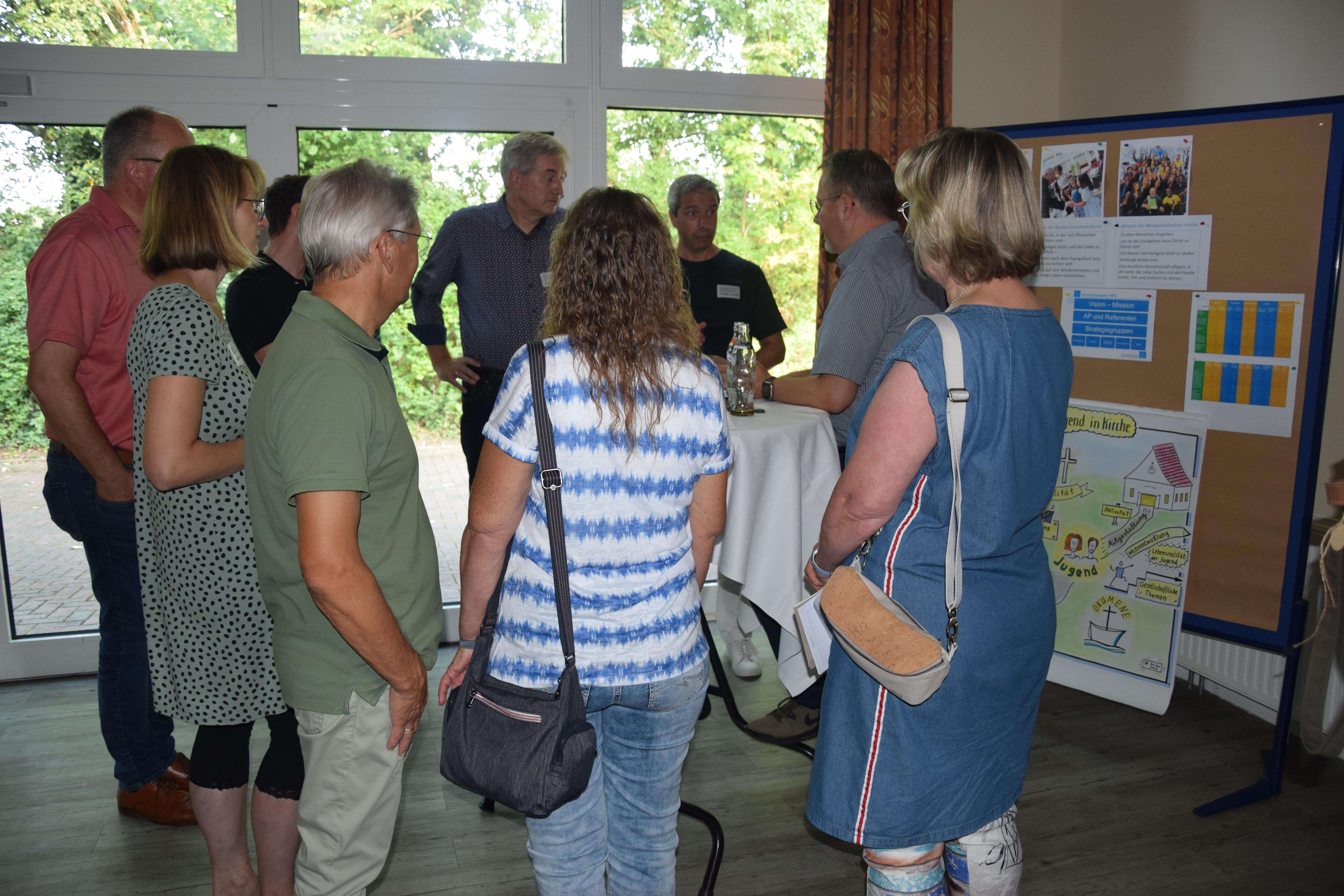 Intensive Diskussionen zur Zukunft der Gemeinde, insbesondere über Herausforderungen für Jugend und Kinder, zeigten das Interesse am gut besuchten Stand, den Apostel Ralf Vicariesmann leitete. Die verschiedenen Strategiegruppen der Gebietskirche (Fortbildung Amtsträger, Immobilien und Standorte von Gemeinden, Kinder und Unterrichte, Jugend und Musik) wurden aufgezeigt, die für ihre Arbeit die im Katechismus formulierte „Vision und Mission“ unserer Kirche als Grundlage hat.