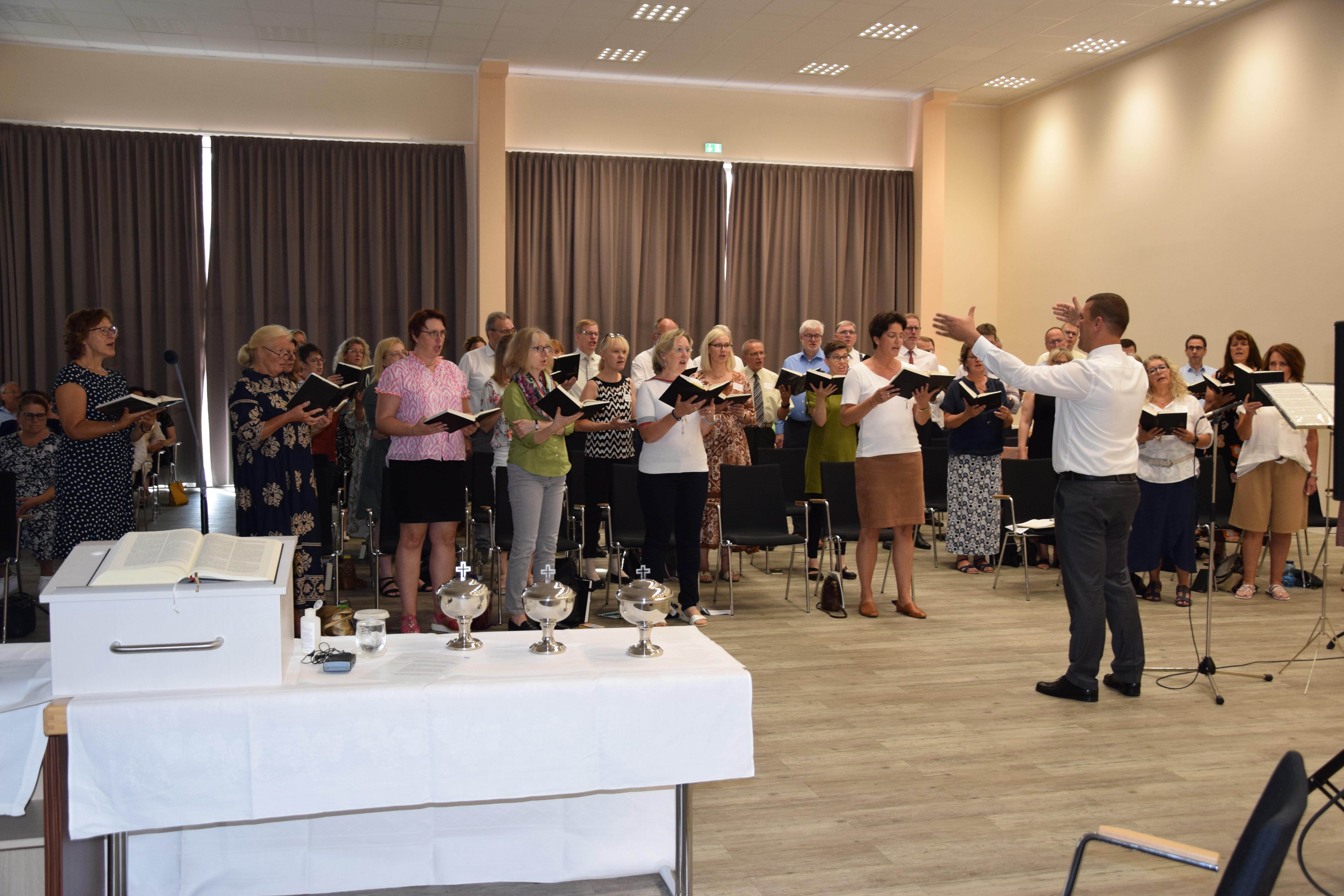 Musikalisch gestalteten ein gemischter Chor aus den Teilnehmenden sowie zwei weitere Ensembles mit Klavierbegleitung feierlich den Gottesdienst.