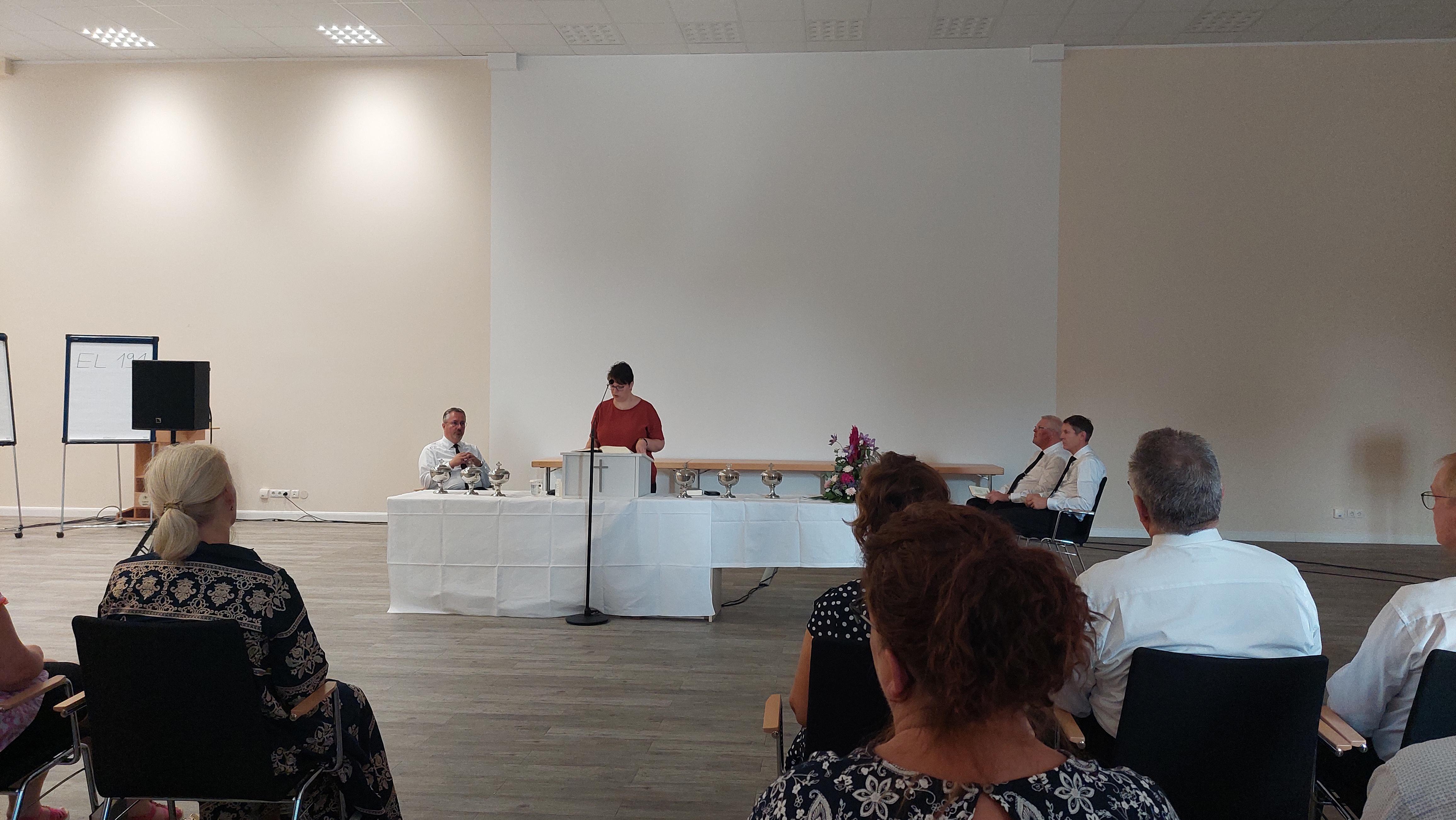 Apostel Vicariesmann stellte den Begriff „Segen“, die Zuwendung Gottes, in den Mittelpunkt einer Andacht, die eine Lesung, gemeinsam gesungene Lieder und Stille zum Inhalt hatte. „Segen ist, etwas zu geben und selbst wieder zu empfangen“, stellte der Apostel als einen Aspekt heraus.